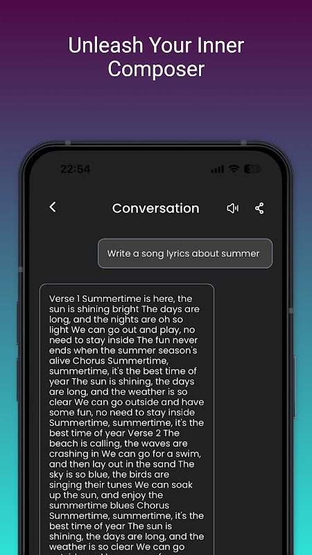 • Partner per la scrittura di canzoni: co-crea il testo di una canzone con MuseMind, condividendo idee e basandosi sui contributi degli altri.
