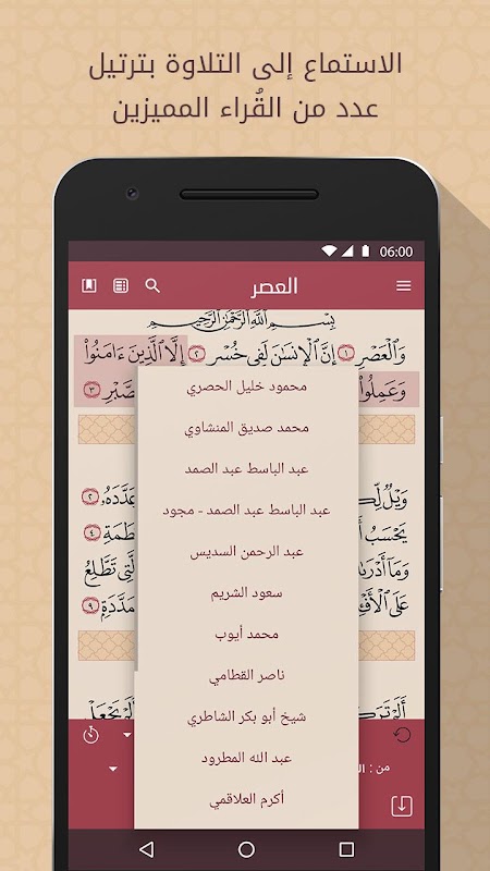 Ascolta la recitazione del Corano recitando un numero di lettori famosi.