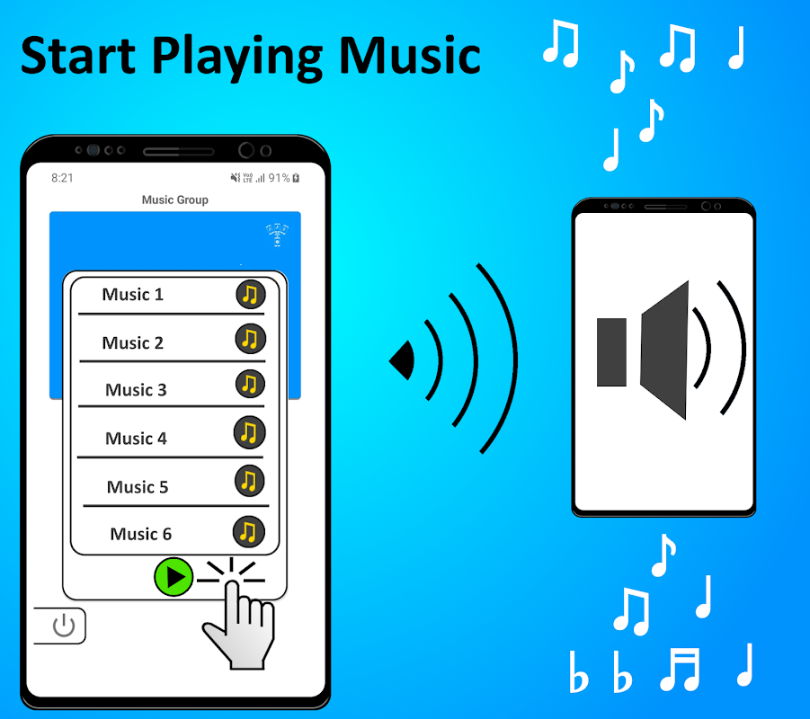 Ora puoi selezionare un brano visualizzato nell'app e quando fai clic su riproduci, viene riprodotto simultaneamente su tutti i telefoni collegati per darti una musica ad alto volume.