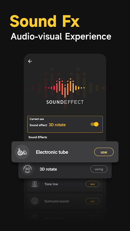 Fornisce un equalizzatore di regolazione a 5 bande e supporta l'equalizzatore a 10 bande per Android 10 e versioni successive, Amplificatore di bassi, virtualizzatore, Riverbero, goditi la tua esperienza di riproduzione di brani di alta qualità
