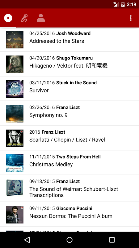 Con "Muspy per Android", puoi anche visualizzare le opere registrate di qualsiasi artista.
