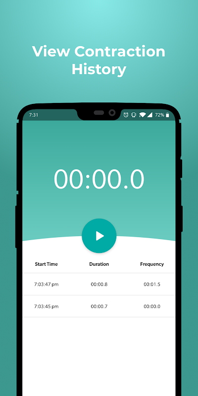 My Contraction Timer manterrà una cronologia di quando ogni contrazione è iniziata, per quanto tempo è durata e la frequenza tra ognuna.