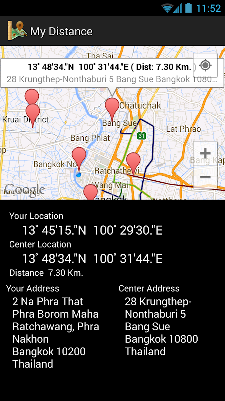 My Distance is an application for calculate between your location and other location. You can Pin point on the map and it will show information such as location address etc. You can switch map type and clear selection pin or all pins on the map.