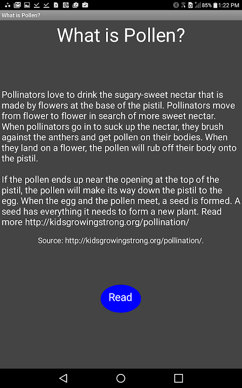 It works the same way for Pollen except it pulls data from a different website; Pollen.com. As for the education part, it includes a learning center where the user may choose different subjects in order to listen to audio lessons about select subjects.