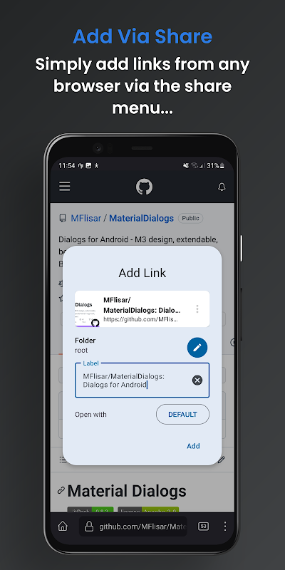 → Gestisce le condivisioni da qualsiasi app per creare facilmente nuovi collegamenti (l'app viene mostrata all'interno del "menu Condividi")