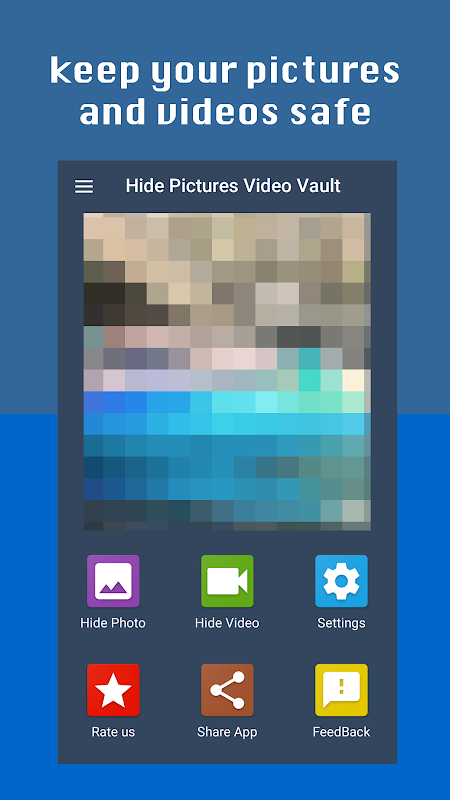 Hide Pictures Video Vault nascondere in modo sicuro questi video e foto private tenendoli lontani da occhi indiscreti, ora è possibile condividere facilmente il telefono, senza preoccuparsi di privacy.