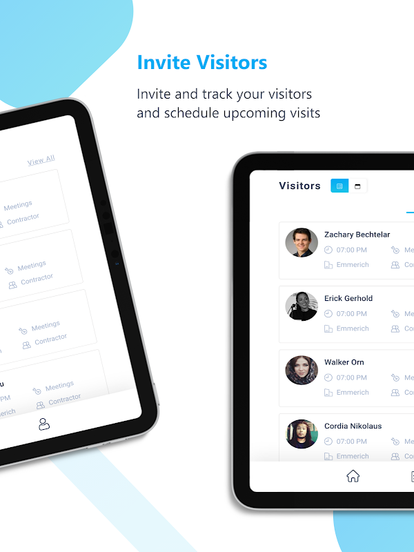L'app My Visitly per i dipendenti per accedere / uscire dal luogo di lavoro in modo facile e veloce e consente di gestire i visitatori passati e futuri, gestire gli inviti e l'accesso alla directory aziendale. Dai un'ottima impressione ai tuoi ospiti e visitatori e mantieni le loro informazioni a portata di mano