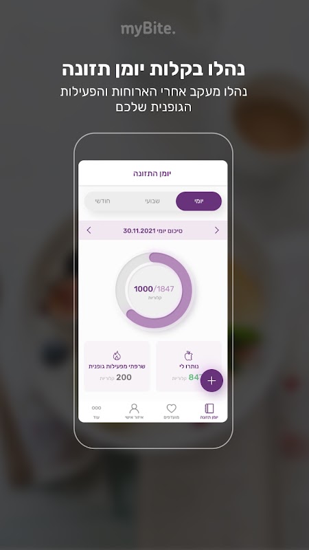 L'app calcolerà e stimerà per te la media dei valori nutrizionali (calorie, carboidrati, proteine, grassi e anche vitamine e minerali). Il calcolo dei valori si basa su un database di ricette popolari internazionali e su un database israeliano unico contenente piatti della cucina israeliana.