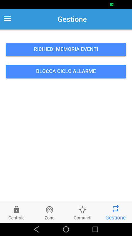 - richiesta e consultazione della memoria eventi.