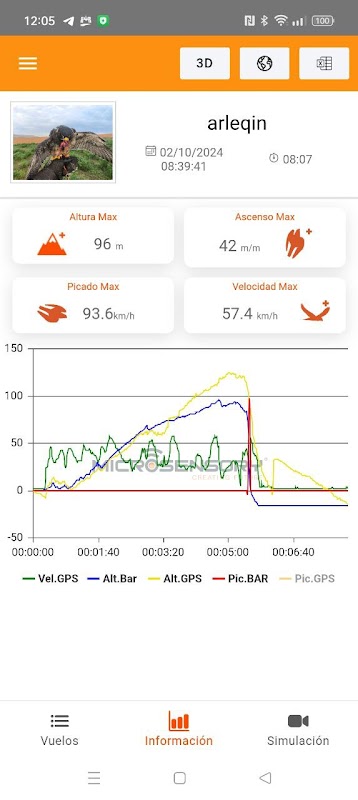 L'applicazione ci permette anche di vedere i voli registrati e un grafico dettagliato con altezza, velocità e immersione.