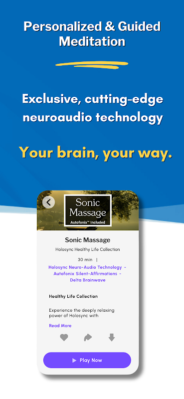 Nota importante: queste non sono le tipiche tracce di "musica rilassante" o "suoni della natura" come troverai in quelle altre app di meditazione. La tecnologia Holosync è unica in quanto utilizza un distinto "effetto di guida neurale" che satura il cervello di stimoli, facendolo riorganizzare e migliorare in modo che possa gestire meglio lo stimolo (simile a come il sollevamento pesi migliora un muscolo). Ciò a sua volta porta a una maggiore resistenza allo stress e ad altri miglioramenti a livello fondamentale che di solito richiedono anni di meditazione tradizionale per essere raggiunti.
