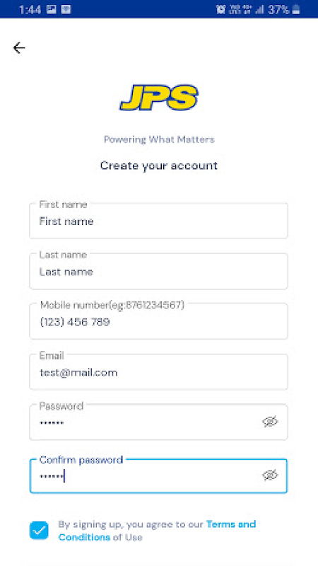 L'app MyJPS Mobile per visualizzare le informazioni sull'account, pagare le bollette e tenere traccia delle interruzioni.