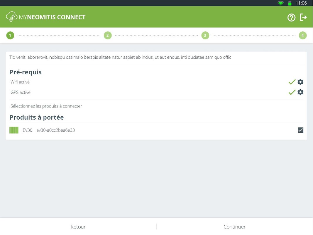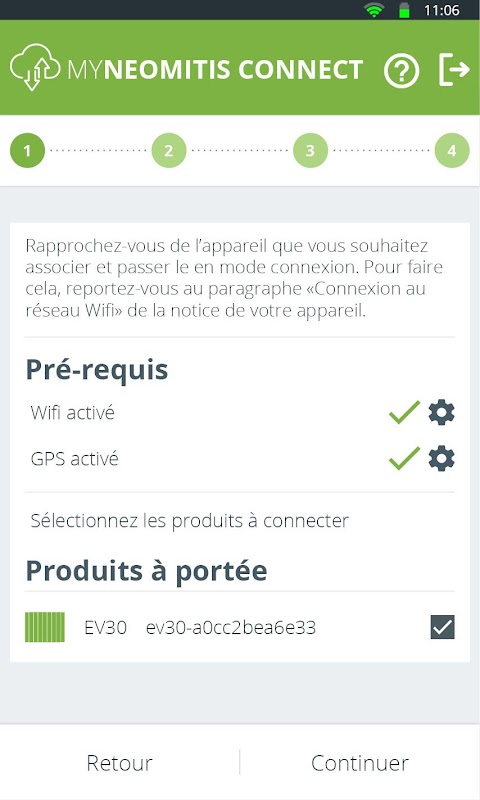 - Assicurare un'associazione automatica con l'alloggio e i conti creati nelle altre applicazioni di Néomitis mediante trasferimento di prodotti dall'applicazione Myneomitis Connect all'account Myneomitis dell'utente. Ad esempio, i prodotti saranno trasferiti direttamente dall'applicazione Myneomitis Connect all'applicazione Myneomitis dopo che i prodotti sono stati installati e abbinati.