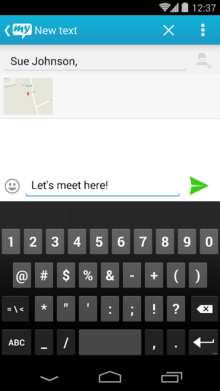 3) Ora sei pronto a condividere la vostra posizione tramite l'applicazione mysms telefono (Nuovo messaggio - Aggiungi allegato - Location)