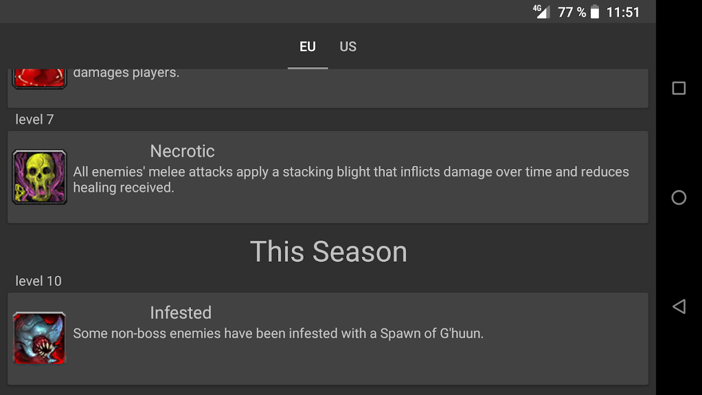 Simple lightweight app showing current mythic+ affixes. Supporting EU and US servers.