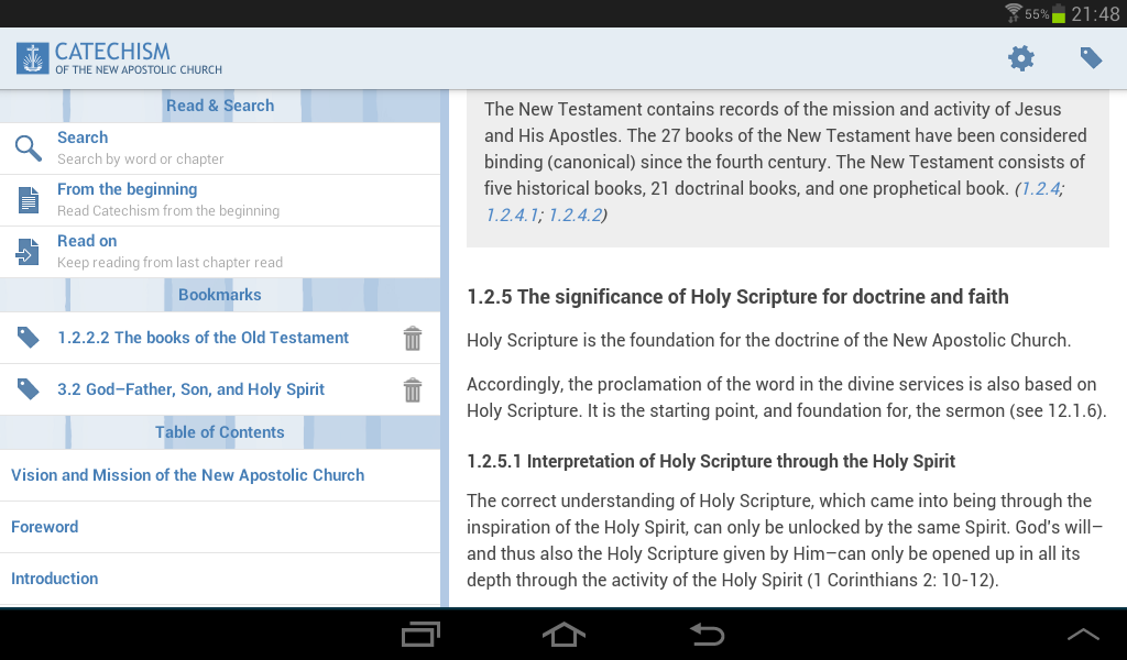 - piacevole lettura del Catechismo della Chiesa Neo-Apostolica su iPhone o iPad