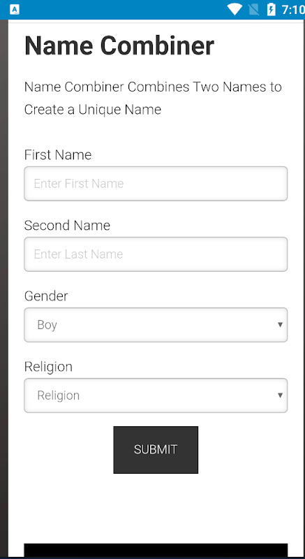 Name Combiner App help you to combine two or more name to one. It combines Baby Names, couples, Business, Domain and Others Names.
