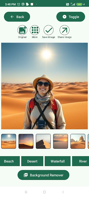Scopri la potenza di Background replacer. La nostra app innovativa ti consente di trasformare istantaneamente le tue foto con un semplice tocco. Scegli tra una vasta collezione di 250 sfondi naturali mozzafiato, tra cui foreste, montagne, spiagge, deserti, cascate, fiumi, tramonti, fiori, grotte e isole.