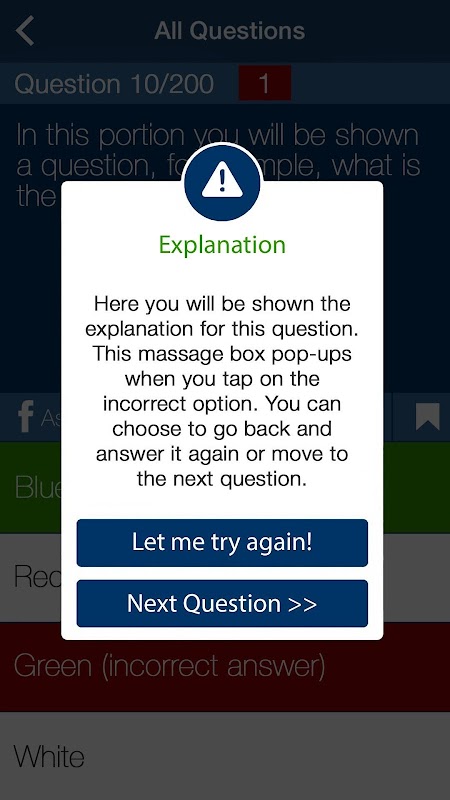 Con due modalità di studio gli utenti possono selezionare il loro metodo preferito di preparazione all'esame NCE. Gli utenti possono sfidare ulteriormente se stessi disattivando la funzione timer e la funzione di risposta dal menu delle impostazioni. Gli utenti possono anche impostare allarmi giornalieri per la preparazione del test NCE e sostenere i test di pratica NCE.
