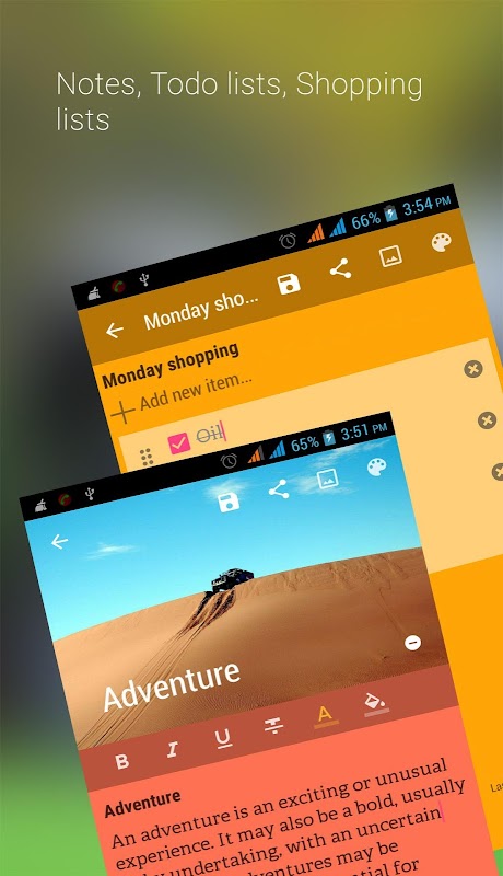 Neat is a note taking application which lets you keep notes, add todo lists , shopping lists with color note backgrounds and reminders in an organized way.