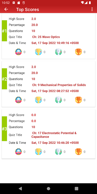- Mock Test & Quiz results with Score and Awards to track your progress