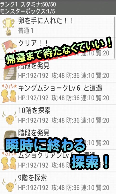 遊ぶのは超簡単。出発ボタンを押した瞬間に冒険が一瞬で完了する。