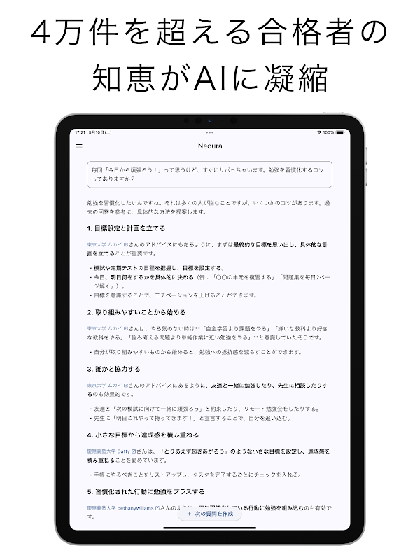 Neoura 勉強AI - 東大・京大・早慶の頭脳が答える