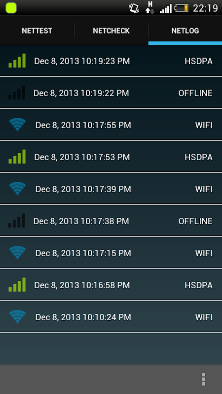 NetCheck shows over which network type you are currently connected.