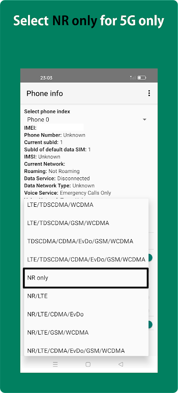Questa app ti consente di aprire impostazioni nascoste per cambiare il tipo di rete solo su 3G/4G/5G, poiché alcuni marchi di telefoni cellulari bloccano la possibilità di cambiare il tipo di rete solo su 3G/4G/5G.