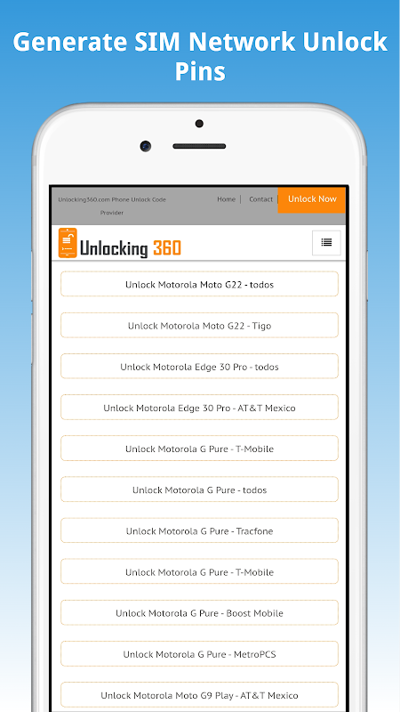 Sblocca il tuo telefono con facilità utilizzando l'"App di sblocco della rete - per tutti". La nostra app potente e intuitiva è progettata per offrirti un'esperienza di sblocco senza problemi, supportando un'ampia gamma di operatori e modelli di telefono, tra cui T-Mobile, Tracfone, Boost Mobile, AT&T, Samsung, LG, Motorola e iPhone .
