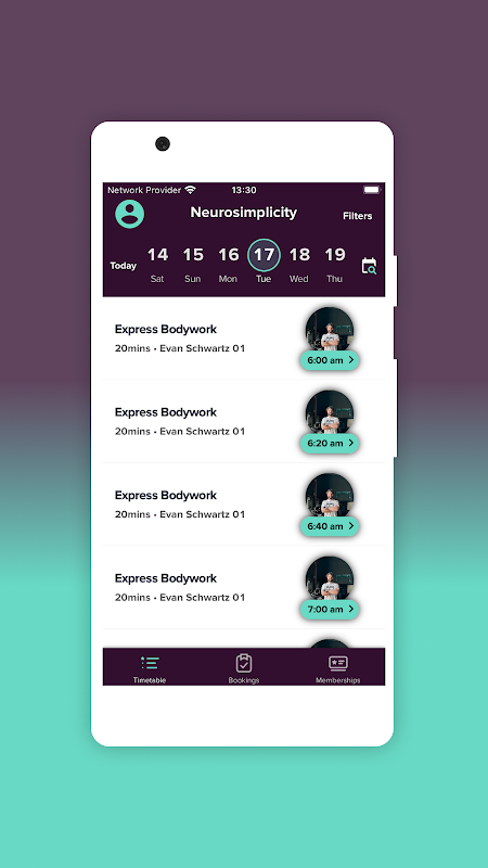 Scarica l'app Neurosimplicity per prenotare facilmente le lezioni e gestire la tua esperienza di fitness, sempre e ovunque. Effettua una prenotazione, vieni aggiunto a una lista d'attesa, controlla il tuo profilo, lo stato dell'iscrizione e altro ancora, tutto dal tuo dispositivo.