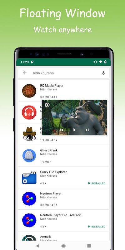 There's is a built in floating window that can be put anywhere on the screen and you will be able to use your phone while watching videos in a floating window that even can be resized, pushed anywhere on the screen. (Requires Android Version 5.0+)