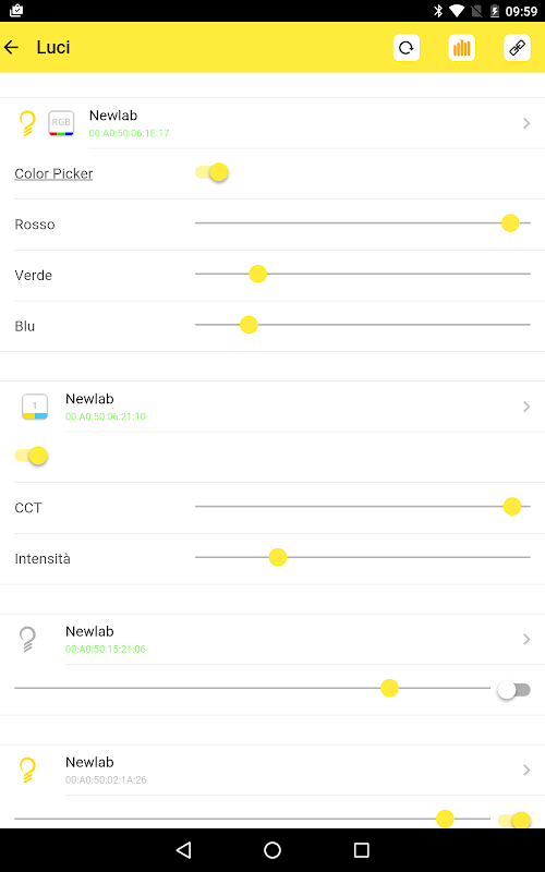 dei dispositivi luce della famiglia Newlab dotati di tecnologia Bluetooth Low Energy.