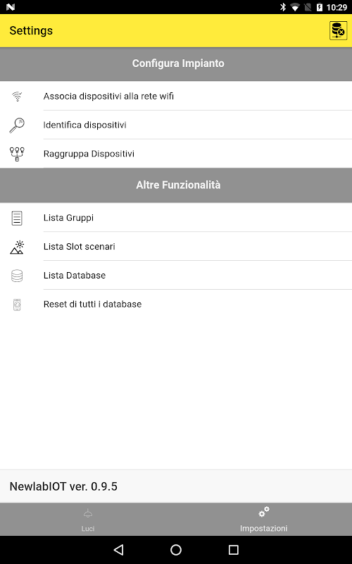 Funzionalità incluse all'interno dell'app Newlab IOT :