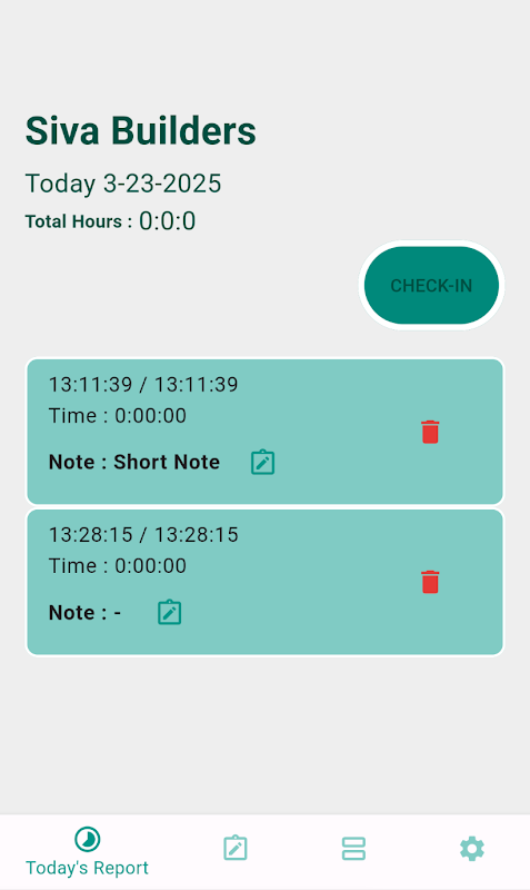Uno strumento di gestione del tempo per gestire il check-in e il check-out, in base all'azienda selezionata.