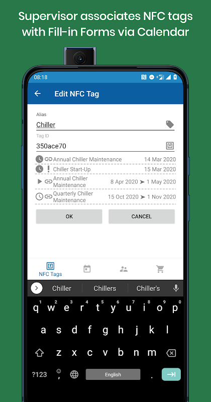 I tecnici usano l’app Elenco Attività NFC per scansionare i tag e accedere ai moduli Google Forms visualizzati in seguito alla scansione.