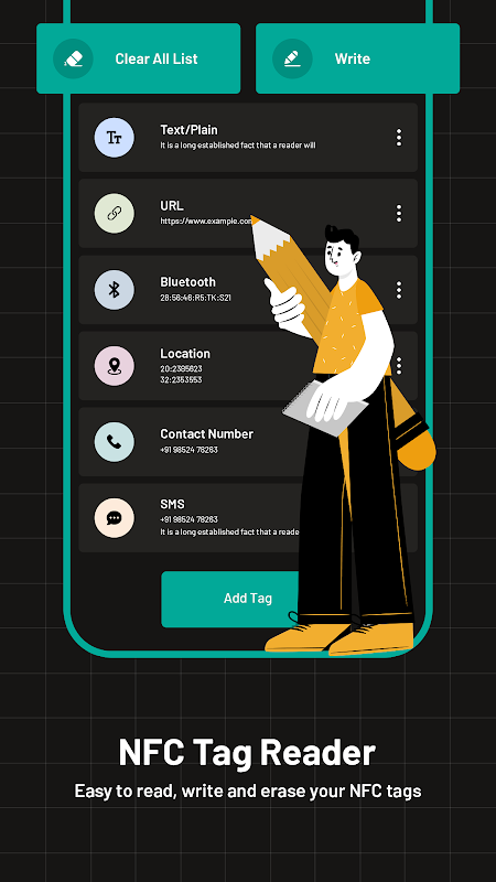 Scrivi i dati sui tag NFC, personalizzandoli in base alle tue esigenze specifiche.