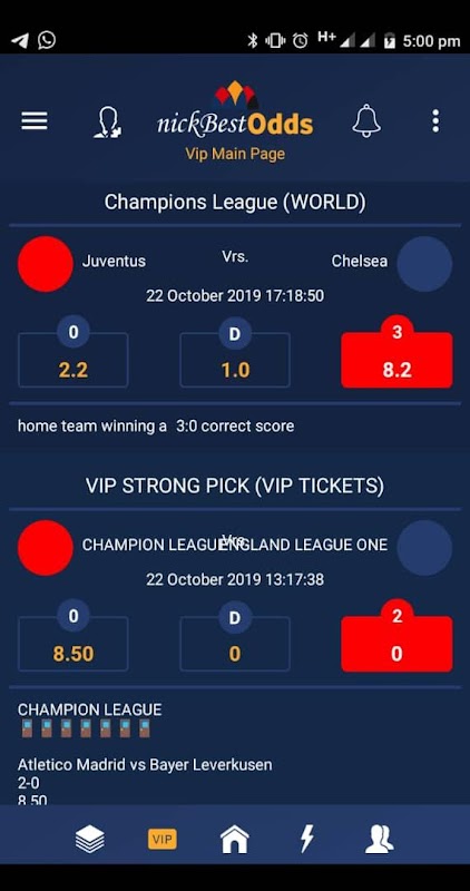 The last view to see at the bottom-most part of the app. This navigation has several navigation menus the first displays the HOME SCREEN, the second displays VIP ODDS where you need to administrator permission to access, third on the list is the live football Fixtures across the globe, next to it is also a VIP section where all premium sporting Odds tips