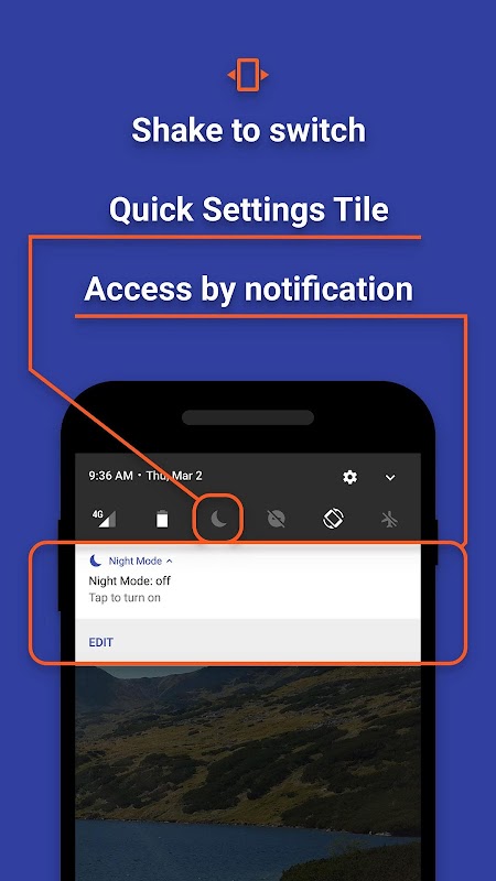 L'app Night Mode filtra la luce blu che, secondo gli ultimi studi di ricerca, aumenta la vigilanza e può influire sui cicli naturali di sonno e veglia (ritmo circadiano). Inoltre controlla con precisione la temperatura del colore dello schermo per impostare la luce migliore per calmarsi e rilassarsi.