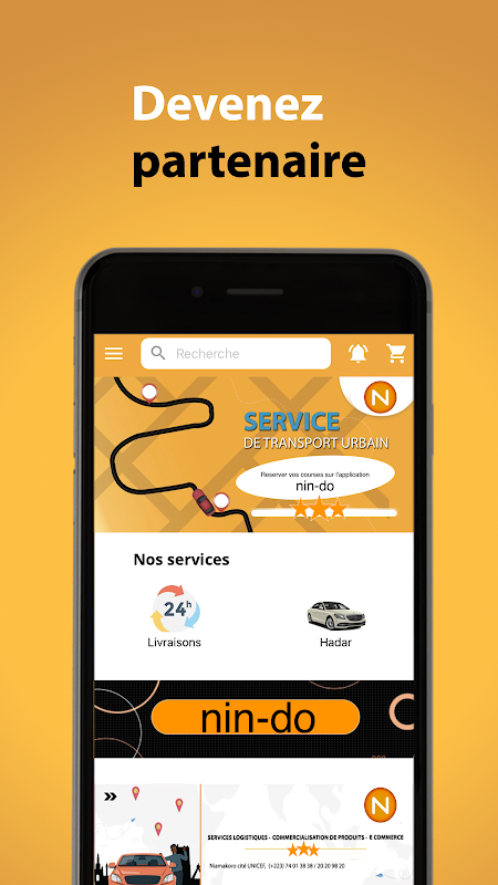 Nindo è la prima piattaforma maliana multiservizio che include la mobilità in Mali. L'applicazione offre una vasta gamma di servizi pensati per semplificarti la vita. In pochi clic, approfitta dei tuoi servizi locali preferiti e semplifica la tua vita quotidiana.