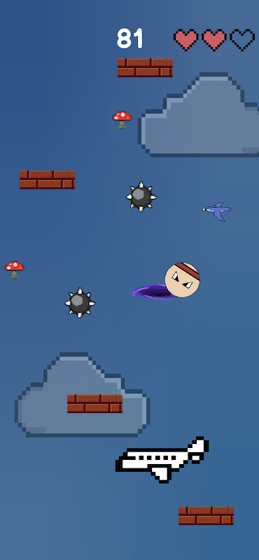 Gioca e vinci! Il gioco Ninja Hop offre una comprovata meccanica di gioco di inclinazione in un design interessante. Insieme a una classifica online che si azzera ogni mese, i giocatori possono competere tra loro per ottenere il punteggio più alto. Muoviti tra due dimensioni, padroneggia il cambiamento di gravità e ambiente, evita le trappole e colleziona punteggi per tutto il mese. Il migliore vince! Ninja Hop è un divertente gioco di salti in 2D in cui il tuo compito è arrivare più in alto possibile come un ninja. Palle a spillo che cadono, punte o piattaforme fatiscenti cercheranno di bloccarti la strada. Al contrario, i funghi ti aiuteranno ad alzarti più velocemente e quindi a ottenere più punti. Anche una visita nello spazio non mancherà al tuo viaggio. All'inizio, il tuo ninja ha 3 vite, che gradualmente perde. Dopo aver perso una vita, il gioco ricomincia dalla prima isola, ma non perdi i tuoi punti per il gioco dato, ma vengono comunque aggiunti al tavolo. Dopo ogni perdita di punti vita, puoi raddoppiare i tuoi punti attuali e guadagnare così un vantaggio sugli altri giocatori. Se perdi tutte e 3 le vite, il gioco non finisce, solo il ninja deve riposare per un po'. Se non vuoi aspettare e vuoi giocare subito, puoi usare anche questa opzione.