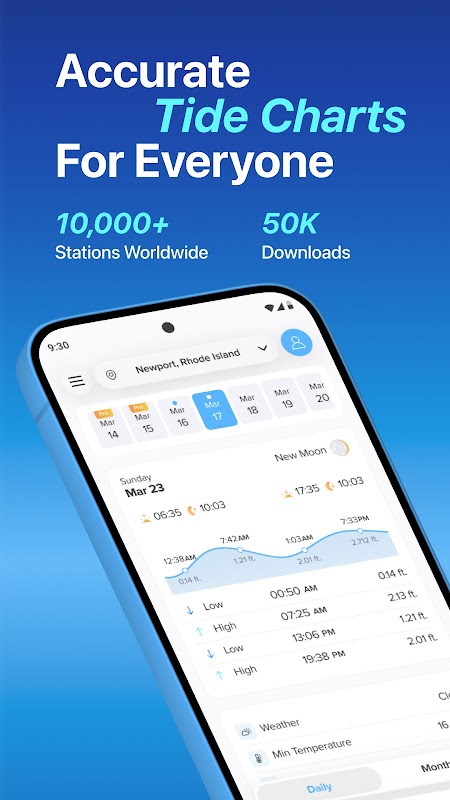 Benvenuto in NOAA Tides Chart, un'app facile da usare che ti dà accesso a informazioni complete sulle stazioni di marea e ai dati lunari. Che tu sia appassionato di vela, pesca, surf o beach combing, la nostra app fornisce accesso in tempo reale alle stazioni di marea NOAA, aiutandoti a stare al passo con i cambiamenti delle acque.