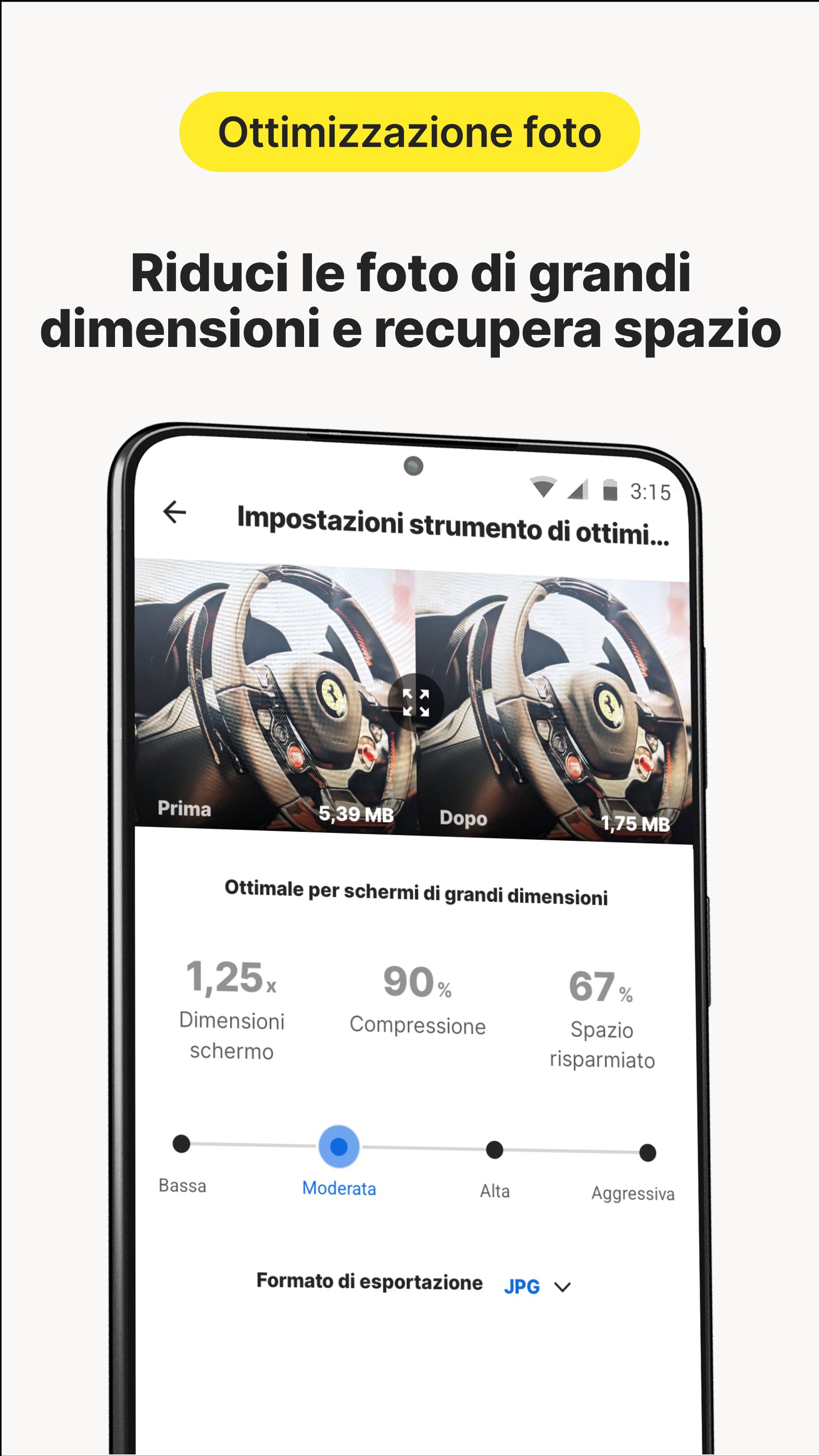 • Comprimi le foto per risparmiare spazio di archiviazione