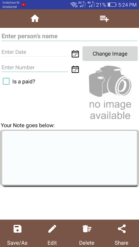 You can use it to save your Certificates, Vehicle Documents, PAN Cards or other important information with image upload.