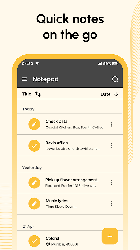 Blocco note è molto più di una semplice app per prendere appunti. È il tuo organizzatore personale, promemoria e custode dei pensieri, tutto in uno. Goditi la comodità di accedere alle tue note sempre e ovunque, anche offline.