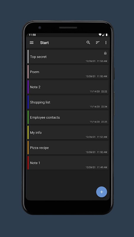 Blocco note semplice con note a colori, cartelle, password, esportazione, backup