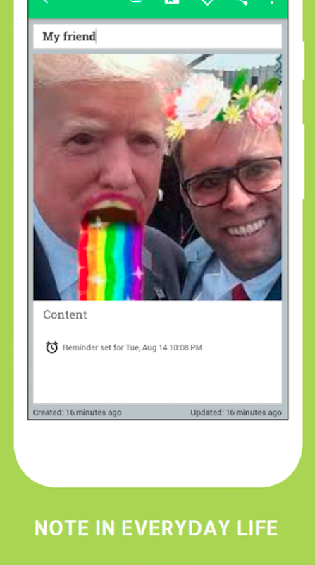 Nota: le note di testo, le note di immagine e le note vocali sono un valido aiuto per gestire i tuoi programmi e le tue note. Ti offre un'esperienza di modifica del blocco note rapida e semplice quando scrivi note, promemoria e liste di cose da fare. Rende più facile prendere appunti rispetto a qualsiasi altro blocco note e app per memo.