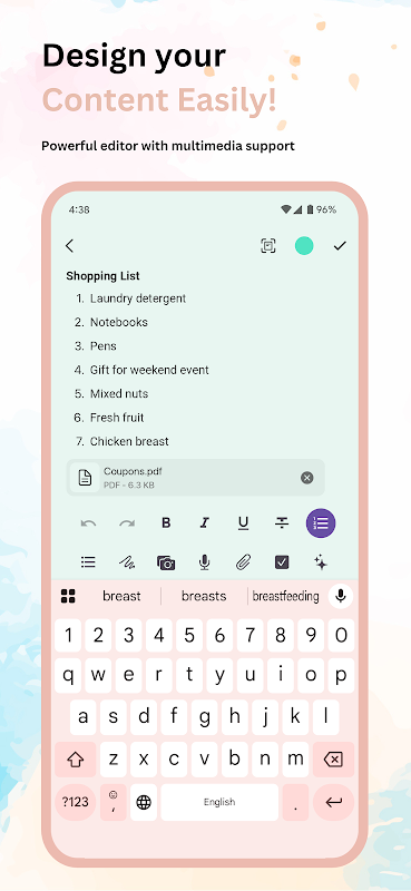 - Supporto multimediale - Editor potente con capacità di aggiungere allegati
