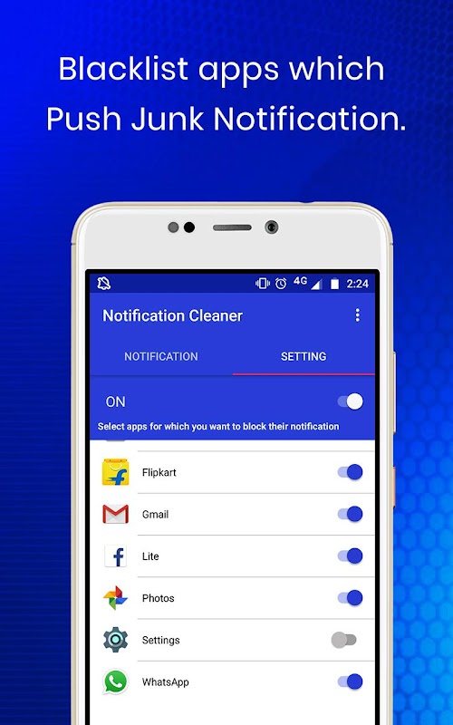 Do you also get irritated by seeing too many unwanted notifications in your phone status bar? Use Notification Cleaner & get rid of junk notifications by Blacklisting apps which push junk notification the most , Notification Cleaner provides a powerful and efficient notification cleaner and manager. you can use it to solve up problems.