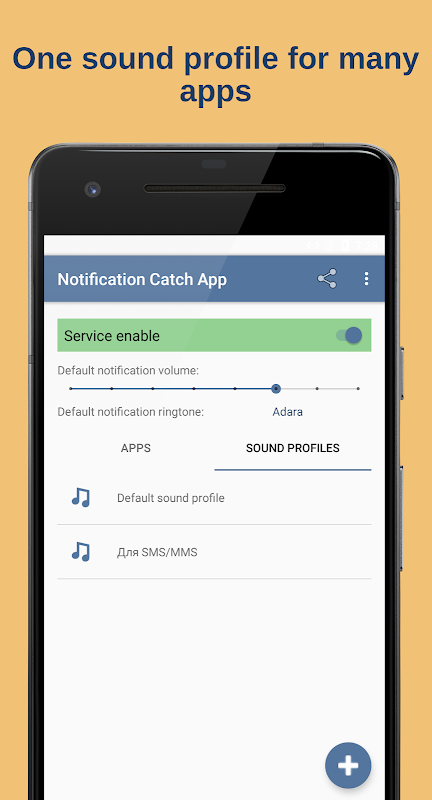 Prima di tutto, configurare i profili audio (selezionare il file audio, impostare il livello del volume e la modalità vibrazione, selezionare il tipo di profilo: allarme o melodia). Quindi, aggiungere la vostra applicazione alla lista di applicazioni e legandoli con qualsiasi profilo audio.